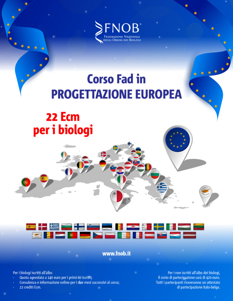 Per ampliare la propria offerta formativa nei confronti dei Biologi, la Federazione Nazionale degli Ordini dei Biologi (Fnob) intende lanciare un corso Fad dedicato all’Europrogettazione che fornisca ai partecipanti tutte le competenze di base necessarie per gestire l’intero ciclo di vita di un progetto locale, nazionale o europeo nel settore ambientale sanitario.