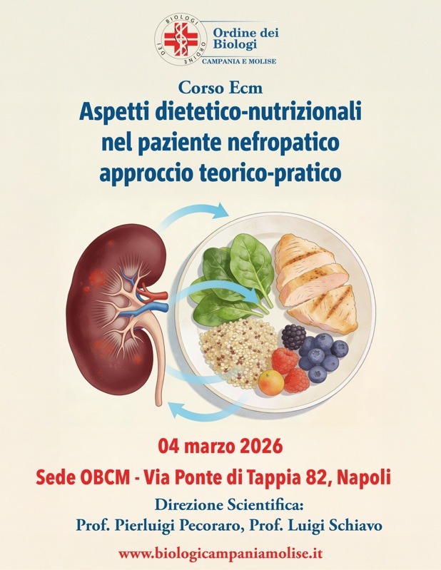 L’evento formativo si terrà nella sede dell’Ordine dei Biologi della Campania e del Molise (OBCM), in via Ponte di Tappia, 82