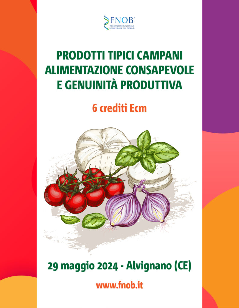 Prodotti tipici campani: alimentazione consapevole e genuinità produttiva”: è il titolo del corso di formazione organizzato dalla Federazione Nazionale degli Ordini regionali dei Biologi (Fnob). L’evento si terrà il prossimo 29 maggio ad Alvignano (CE).