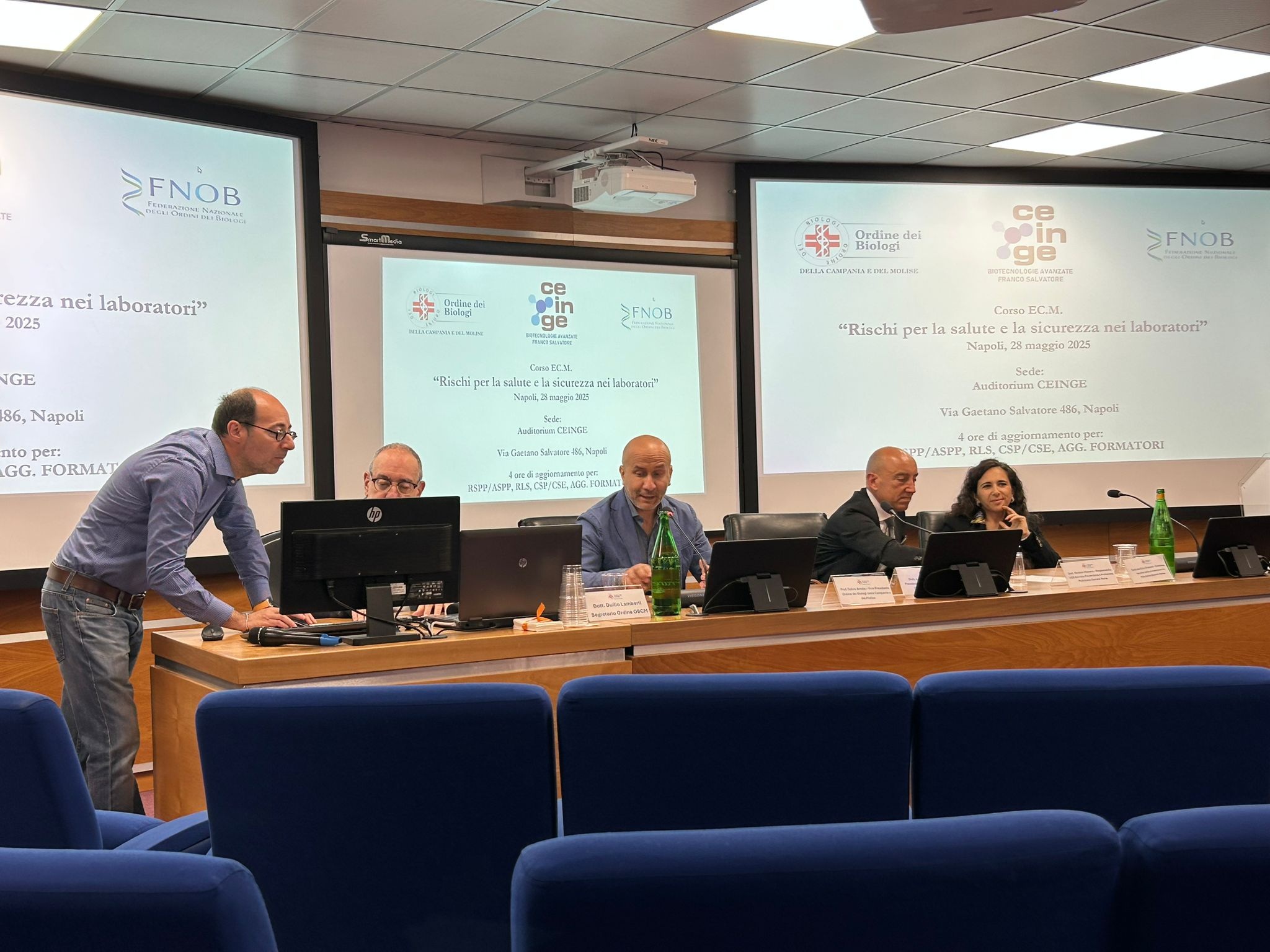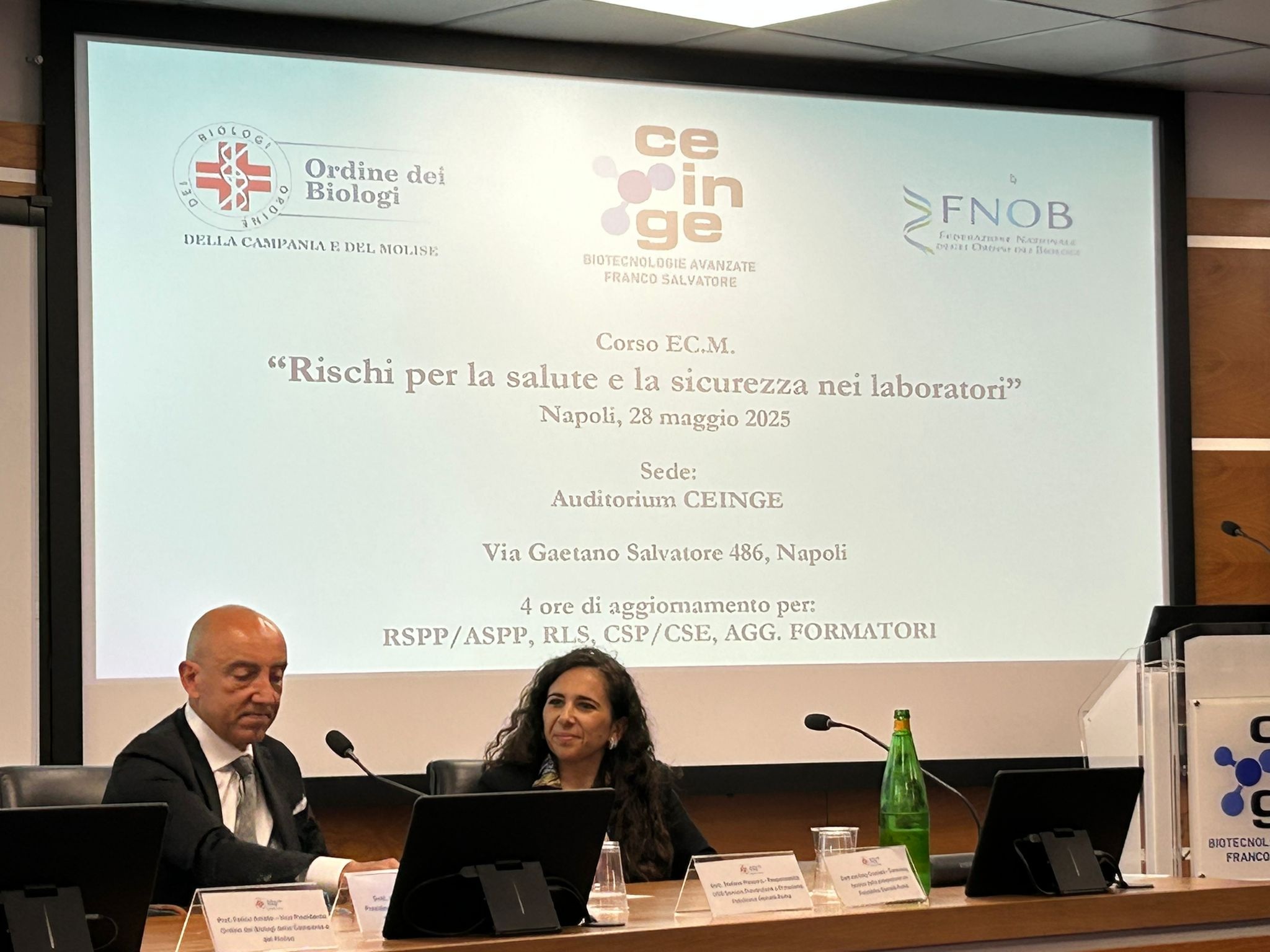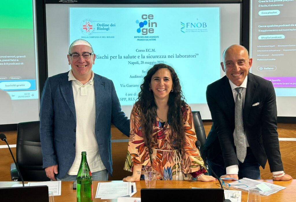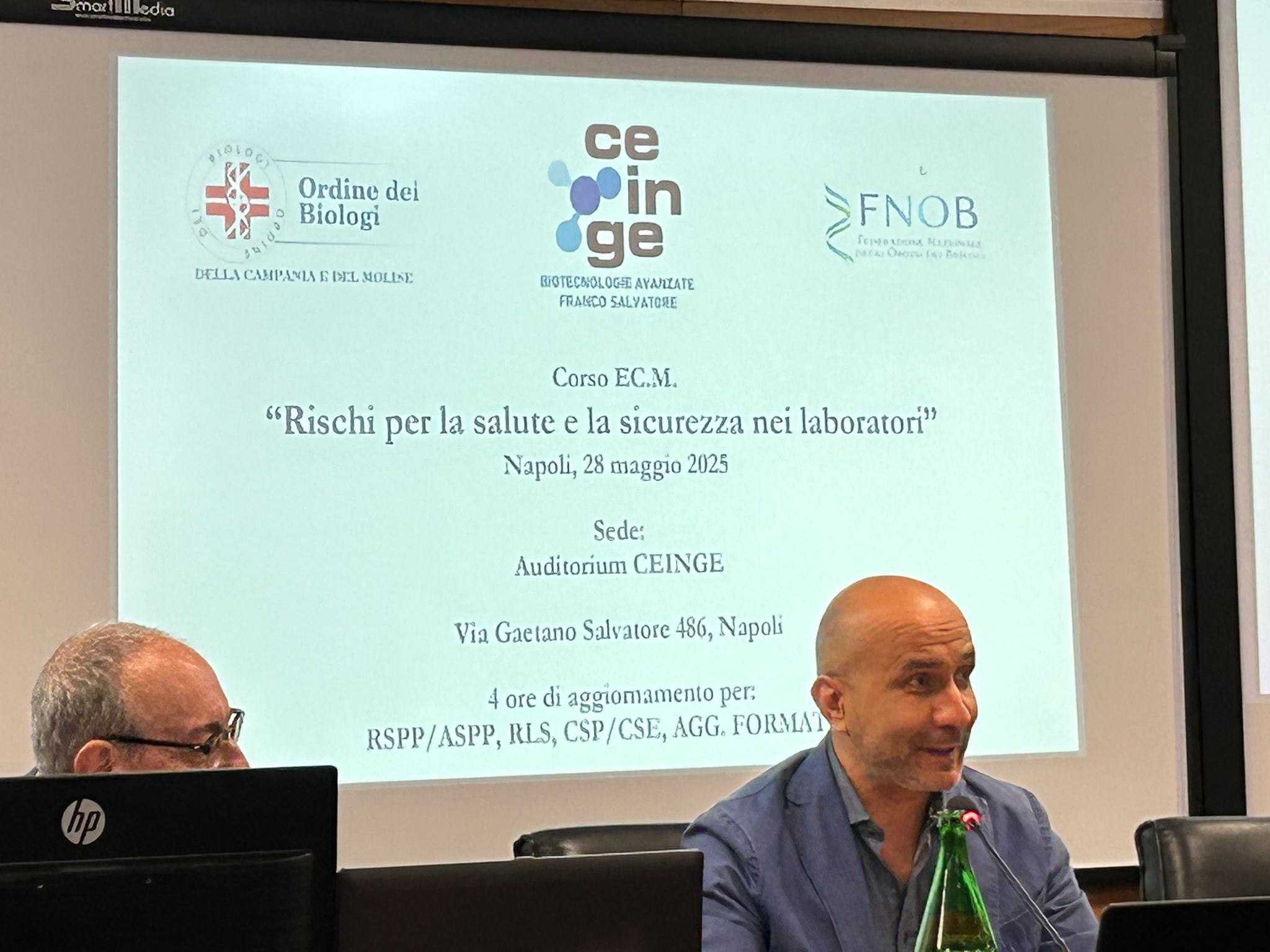 Si è concluso con grande partecipazione e notevole apprezzamento il corso di formazione ECM dal titolo “Rischi per la salute e la sicurezza nei laboratori“, organizzato dall’Ordine dei Biologi della Campania e del Molise (OBCM), nell’Auditorium del Ceinge-Biotecnologie avanzate “Franco Salvatore” di Napoli.